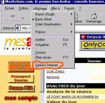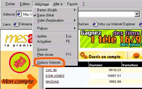 - Allez dans le menu Affichage ( ou Outils dans IE5 ) , Options