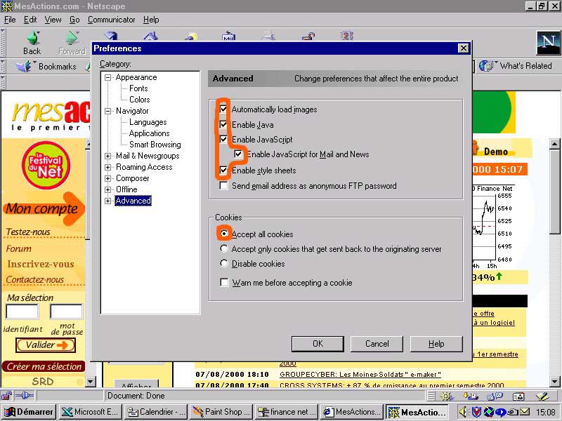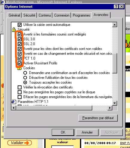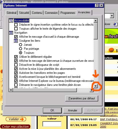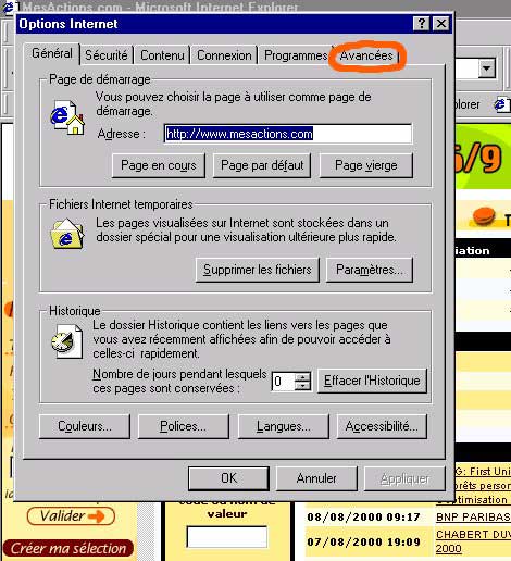 - Apparait alors cette fenetre, allez dans l'onglet Avancées