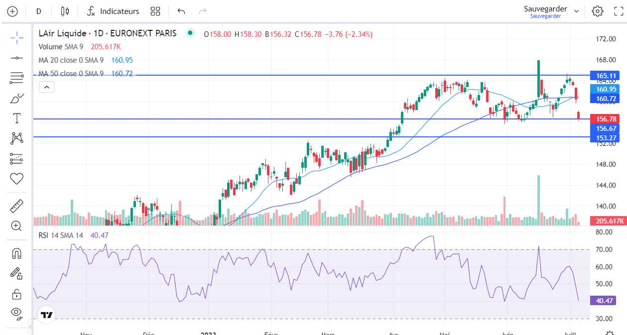 Après une correction de 5% depuis les 165€, nous entrons sur le support récent des 155€.