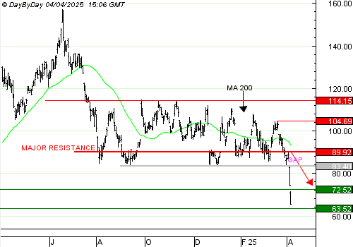 MICRON TECHNOLOGY a poursuivi la baisse après la rupture de son support majeur à 83,4 dollars. Le titre approche de notre deuxième objectif, un vendredi soir... Nous clôturons cette position.