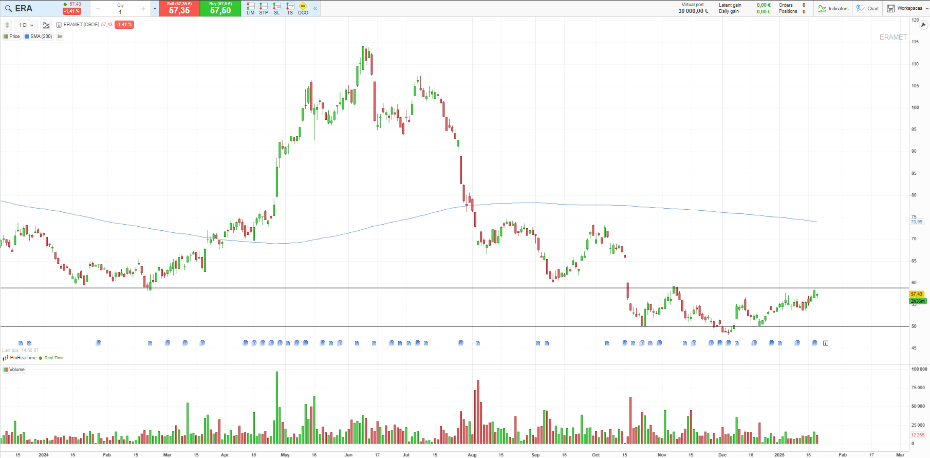 Fourchette : 40.46/40.96. sur un cours de Eramet à 57.43 €