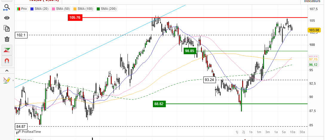 Les objectifs, seuils d'invalidation graphiques et autres informations sont indiqués à titre purement informatif et sont susceptibles d’évoluer en fonction des conditions de marché. Bourse Direct ne peut en garantir l’exactitude ou la fiabilité.