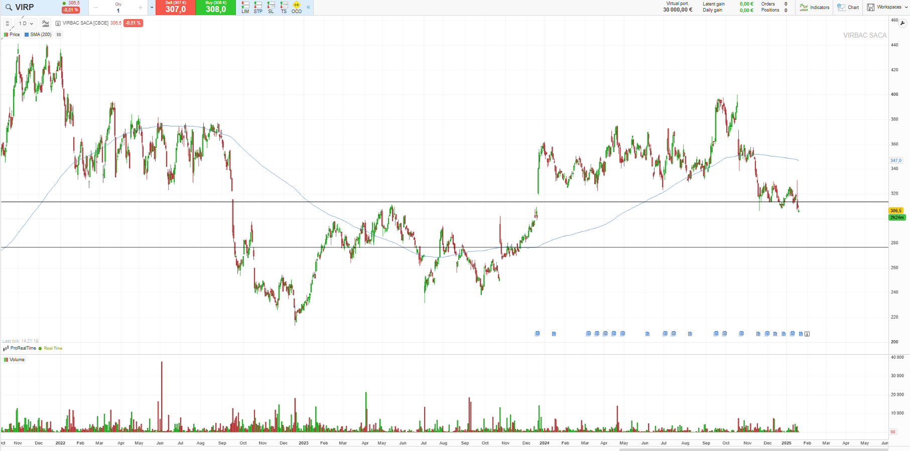 Fourchette : 8.91/9.03. sur un cours de Virbac à 306.5 €