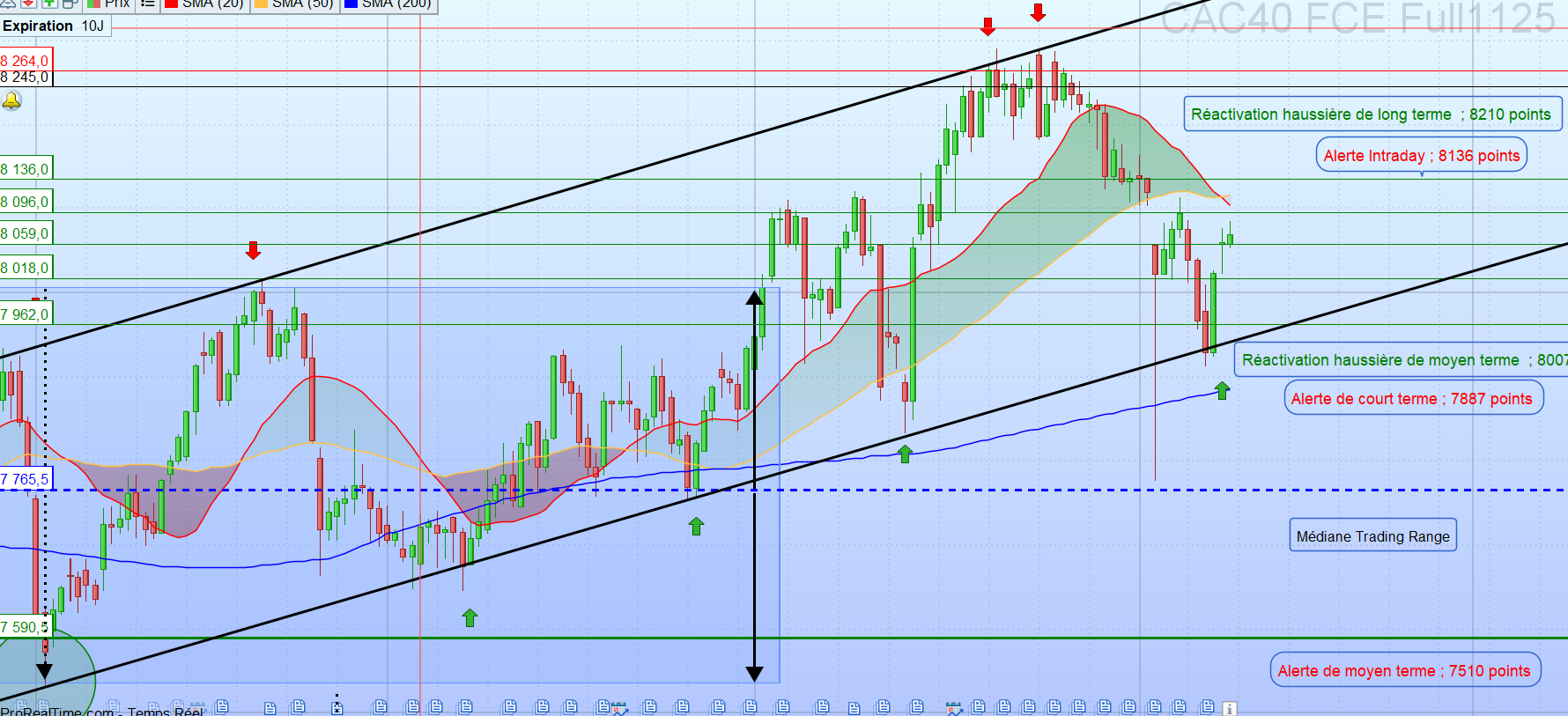 Dans un tel scénario, une correction plus marquée pourrait se mettre en place, avec un premier objectif technique autour de 7 887 points. La cassure de ce niveau enverrait alors un signal négatif à court terme, susceptible de ramener l’indice vers la médiane de l’ancien trading range, proche de 7 765 points.