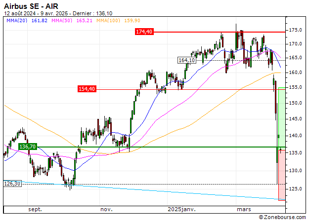 Le titre Airbus SE a subi de lourds dégagements au cours des dernières séances et revient au contact de niveaux importants.