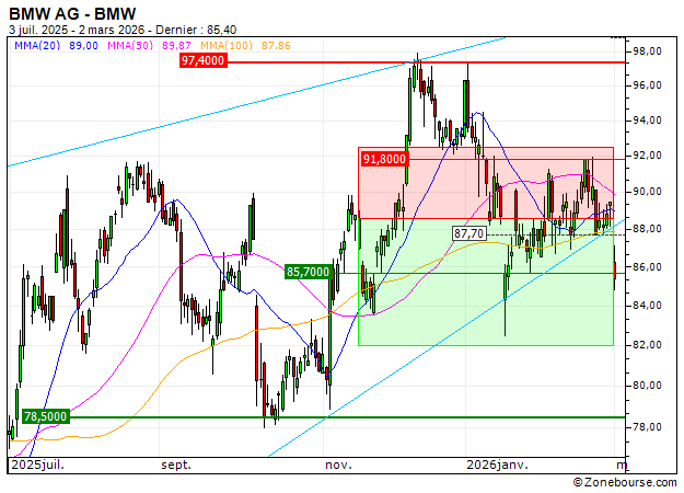 Nous clôturons la ligne sur le turbo PUT Vontobel TO45V portant sur le titre BMW AG à 0.91 EUR.