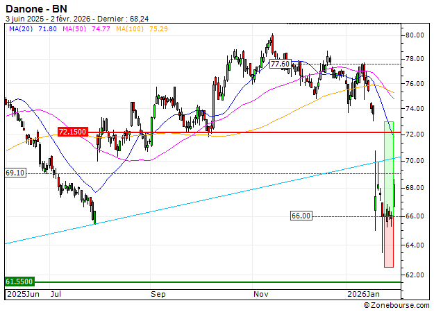 Danone : Vente du warrant CALL Vontobel CI63V (+26.09%) (CI63V)