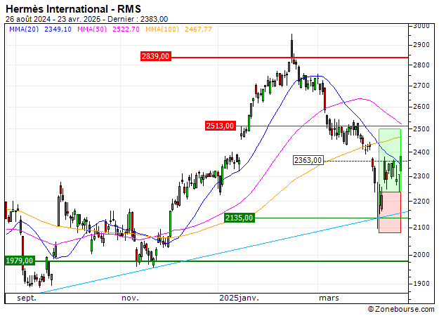 Hermès International : Prises de bénéfices sur le warrant CALL Vontobel BQ60V (+17.46%) (BQ60V)