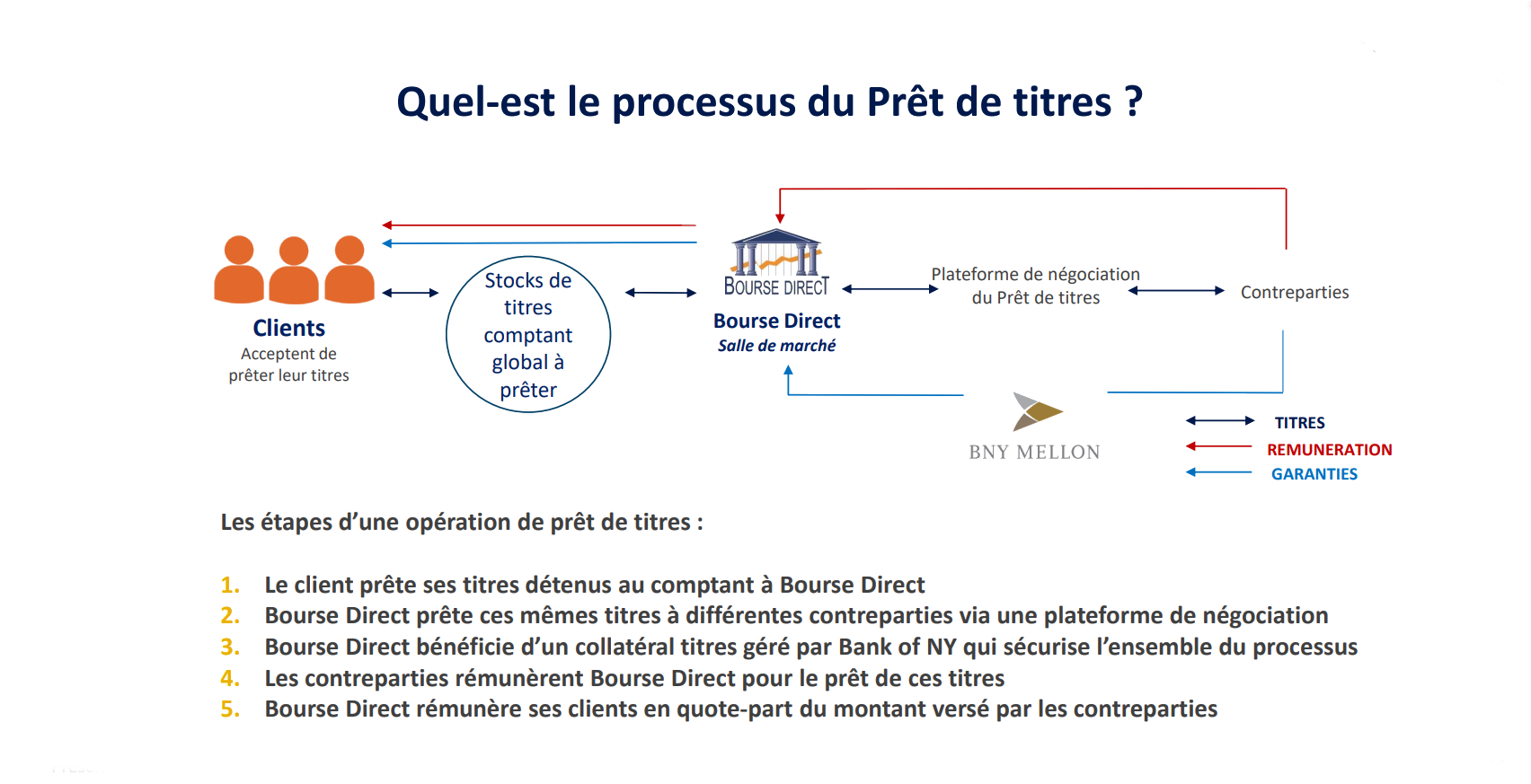 Visitez la page dédiée de Bourse Direct pour découvrir en détail le fonctionnement et les conditions du service de prêt de titres : Bourse Direct – Prêt de Titres.